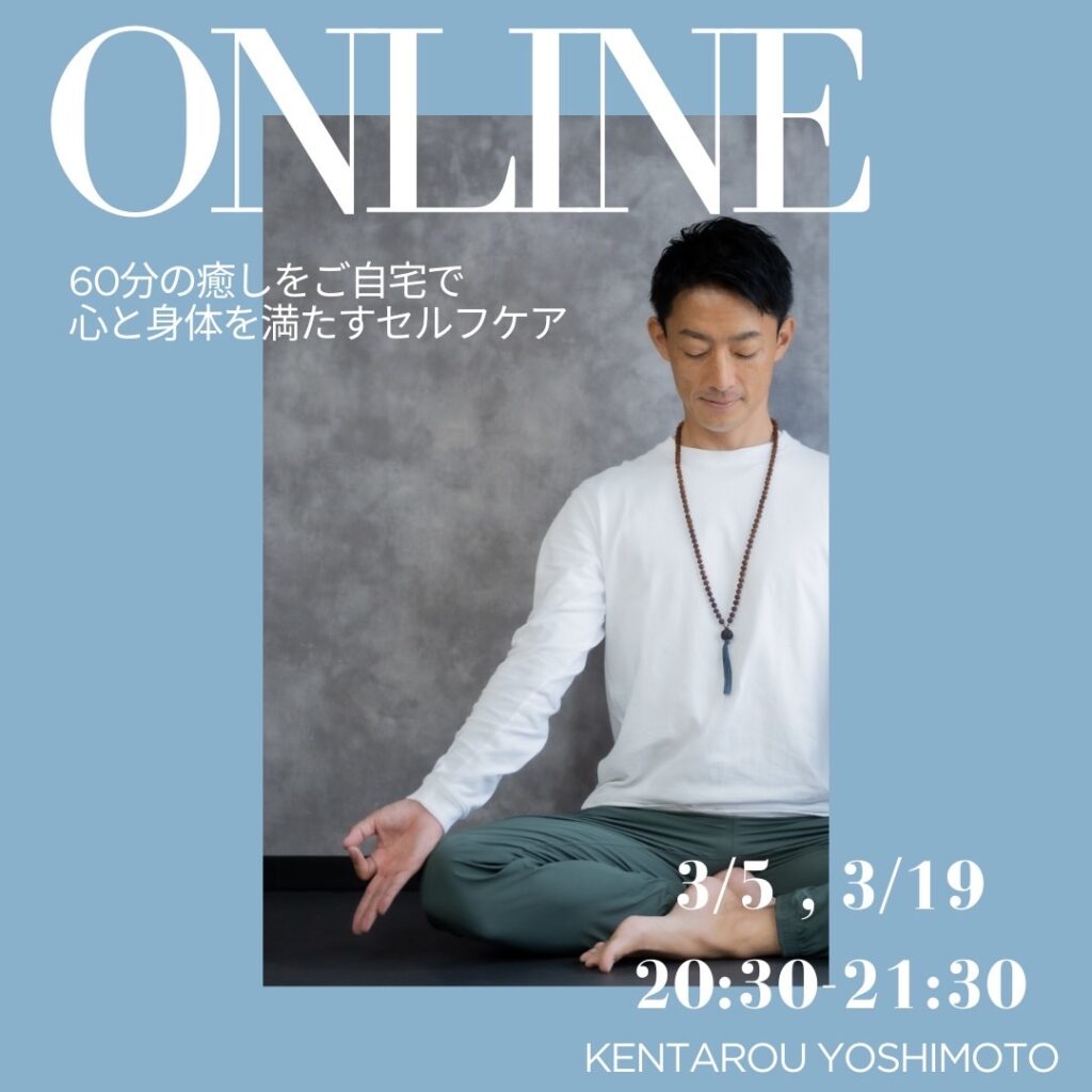 ONLINE class オンラインクラス開催中◉スケジュールはこちらをご確認ください隔週木曜日20:30-21:30のオンラインはオンタイムで受けれられなくても後から好きな時に(翌週木曜日まで)視聴できるようにアーカイブ配信しています。この機会にぜひオンラインヨガもご検討ください! ◆講師吉本憲太郎 @kentarouyoshimoto◆内容・リラックスヨガ、肩スッキリヨガ、むくみ解消ヨガ・クラス動画をご予約、ご希望の方にURLでお送りします・動画は翌レッスン日まで何度でも視聴できます◆料金・単発 1,500円・オンラインチケット1回消化 (5回5,500円)◆お支払い PayPay クレジットカード 銀行振込◆お申込み公式LINE ヘお待ちしています